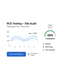 RCD trip times, labelled circuits and photo-backed reports delivered on completion as standard.